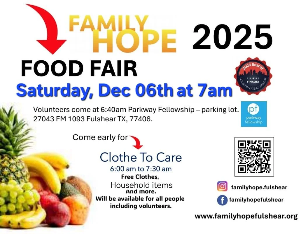 For information on the next session, email info@FamilyHopeFulshear.org or send your name, address and phone number to Family Hope, P.O. Box 543, Fulshear, TX 77441